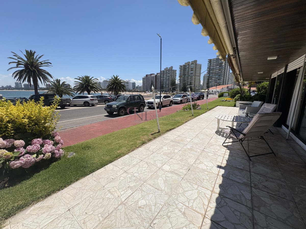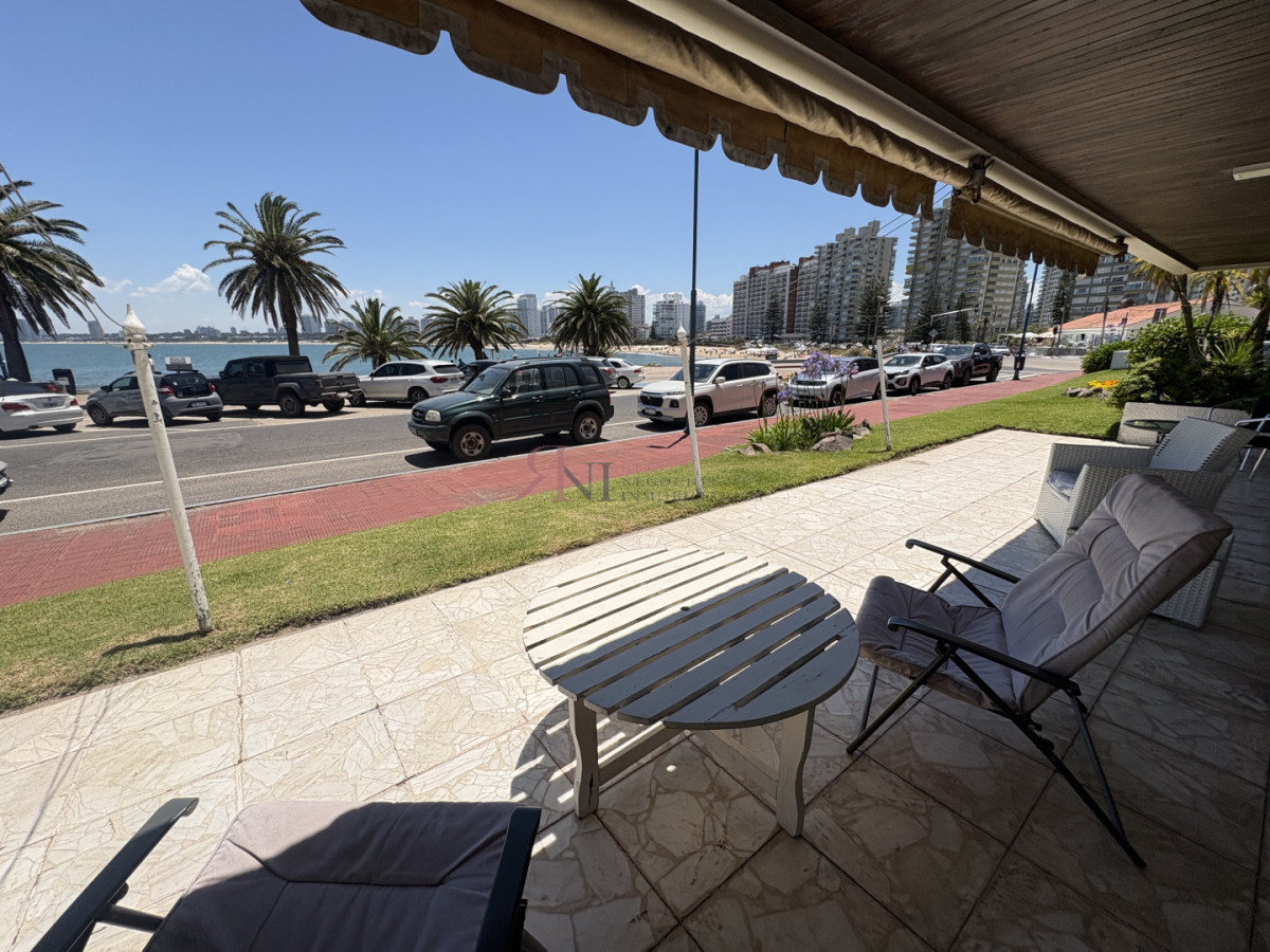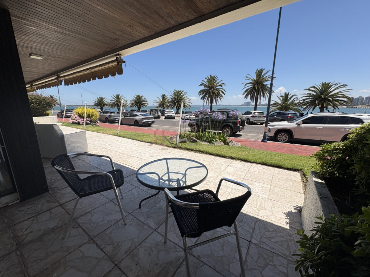 Frente al mar, planta baja con amplia terraza y vista al mar, 3 dormitorios (1 en suite), 2 baños, cocina, dependencia de servicio con baño, lavadero, servicio de mucama y garage.