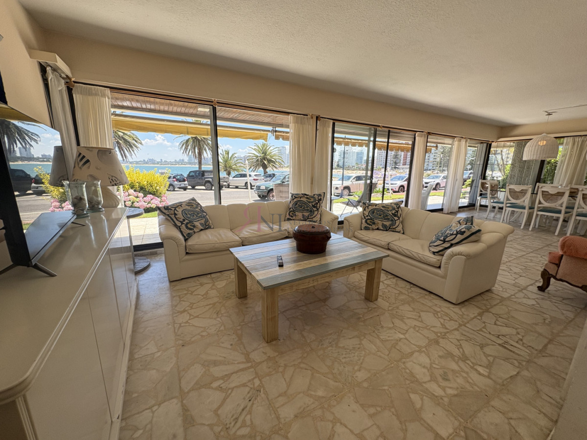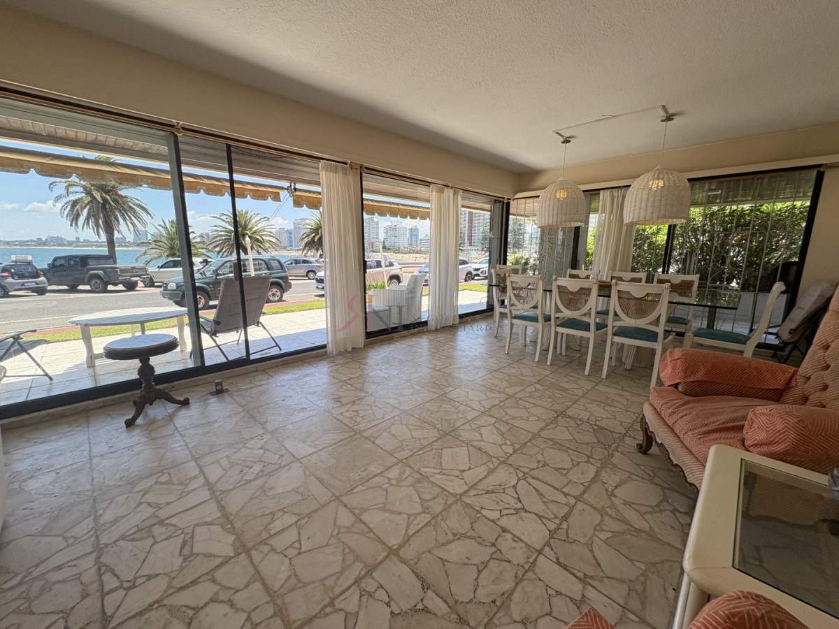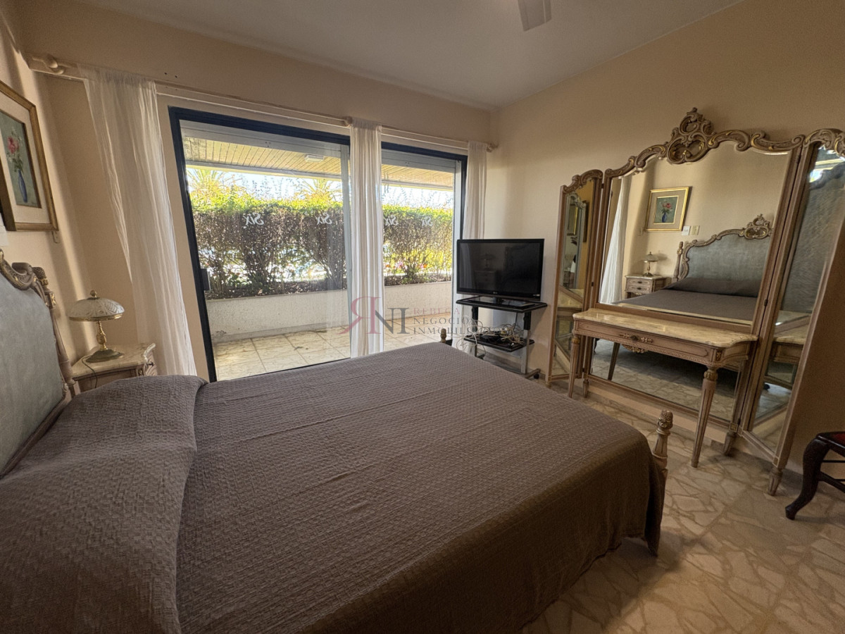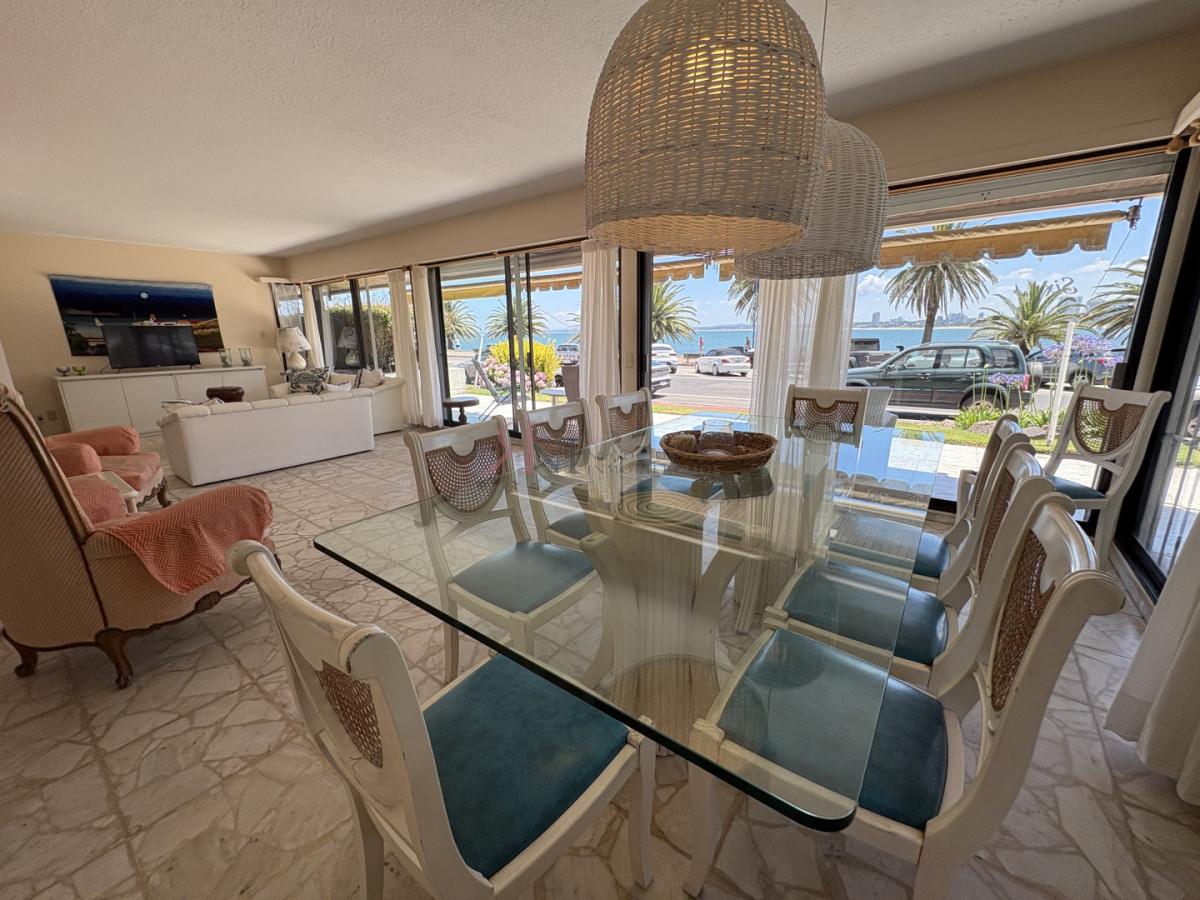 Frente al mar, planta baja con amplia terraza y vista al mar, 3 dormitorios (1 en suite), 2 baños, cocina, dependencia de servicio con baño, lavadero, servicio de mucama y garage.