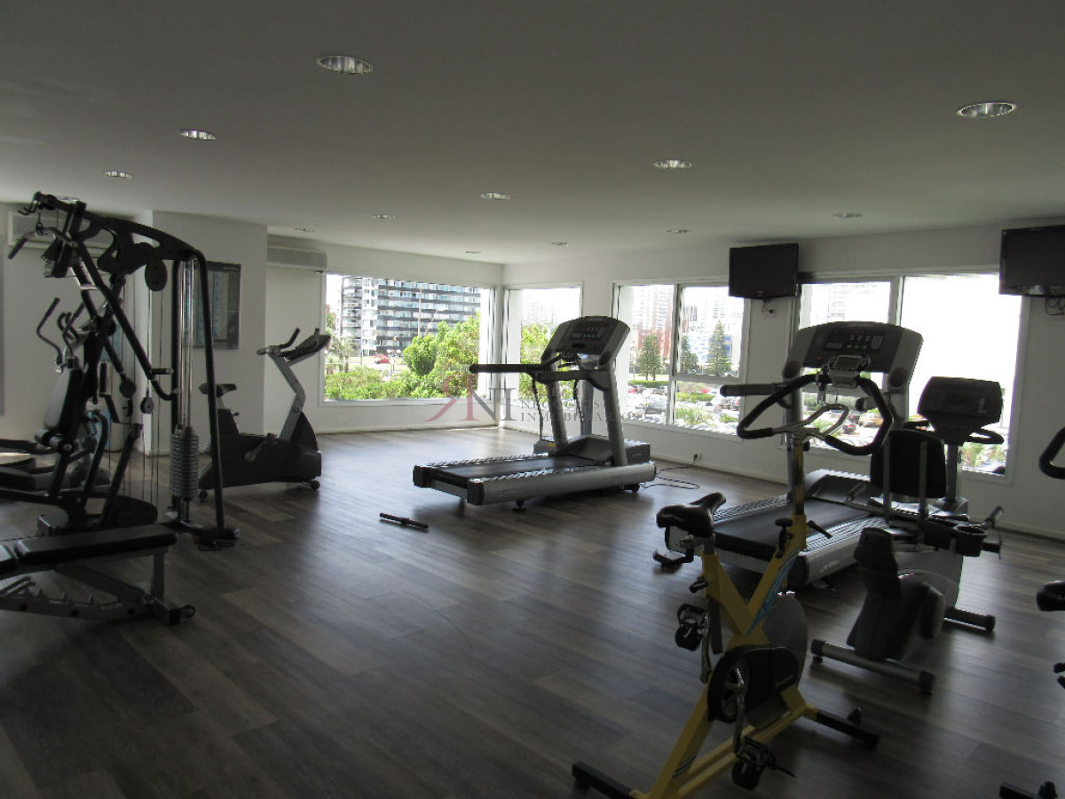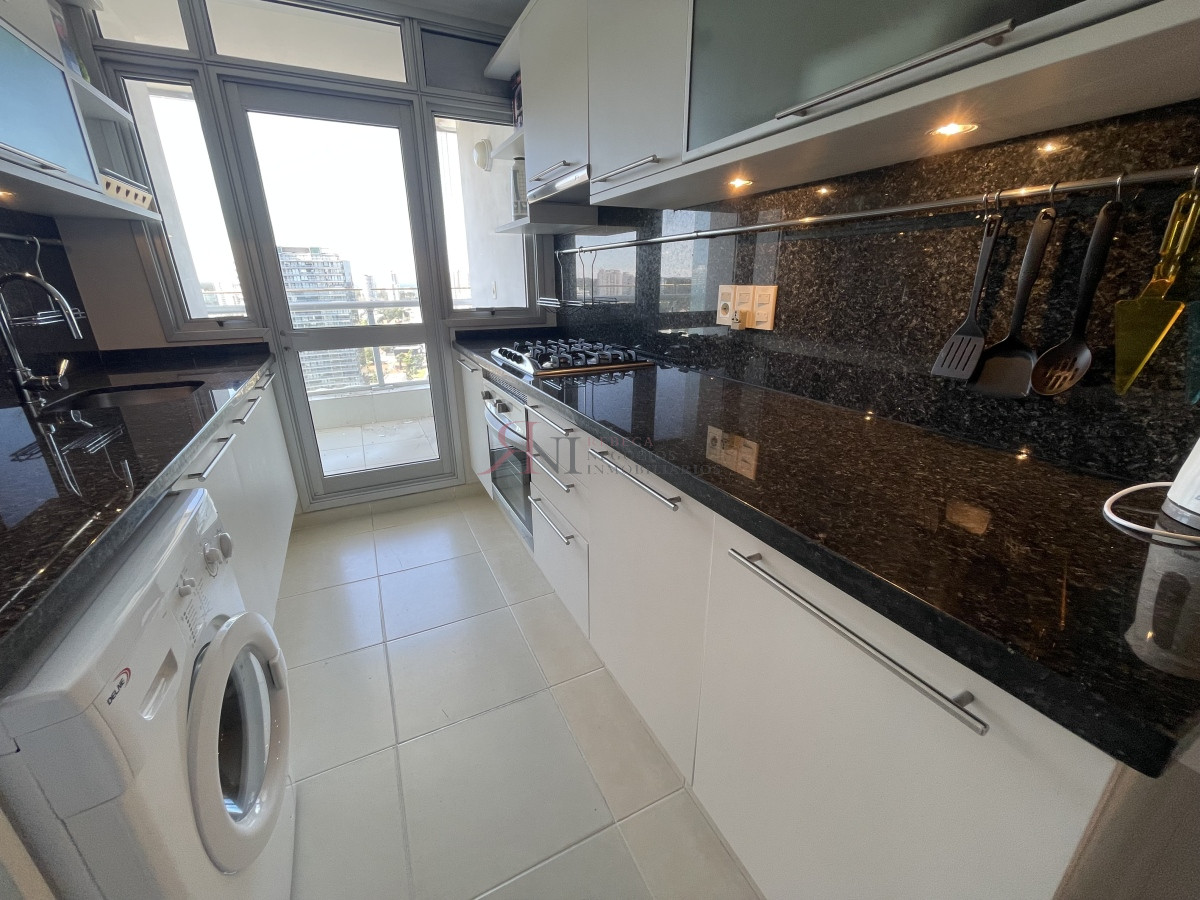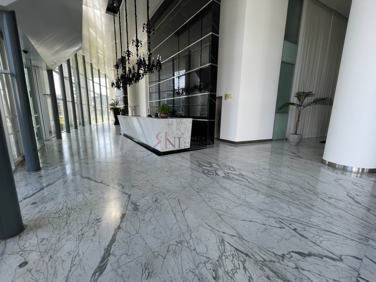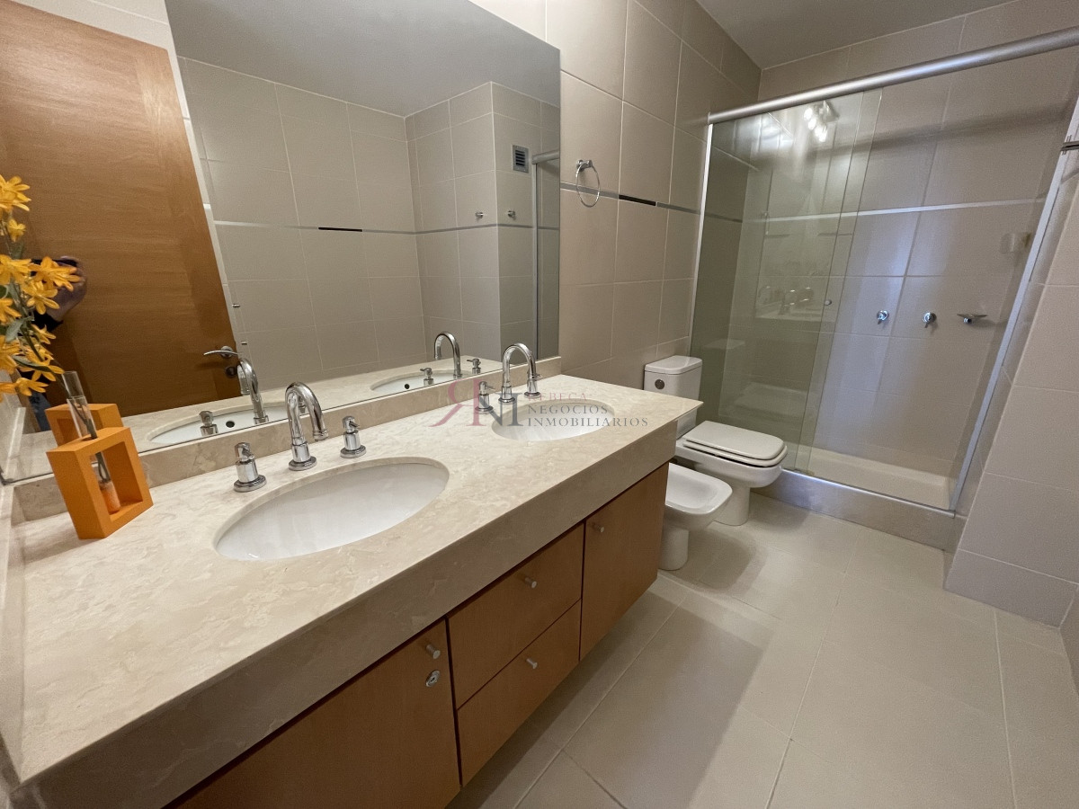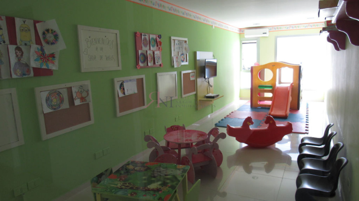 El living comedor tiene increible vista panorámica a la isla Gorritti , terraza abierta, 2 dormitorios en suite, toilette, cocina completa y definida, garaje.