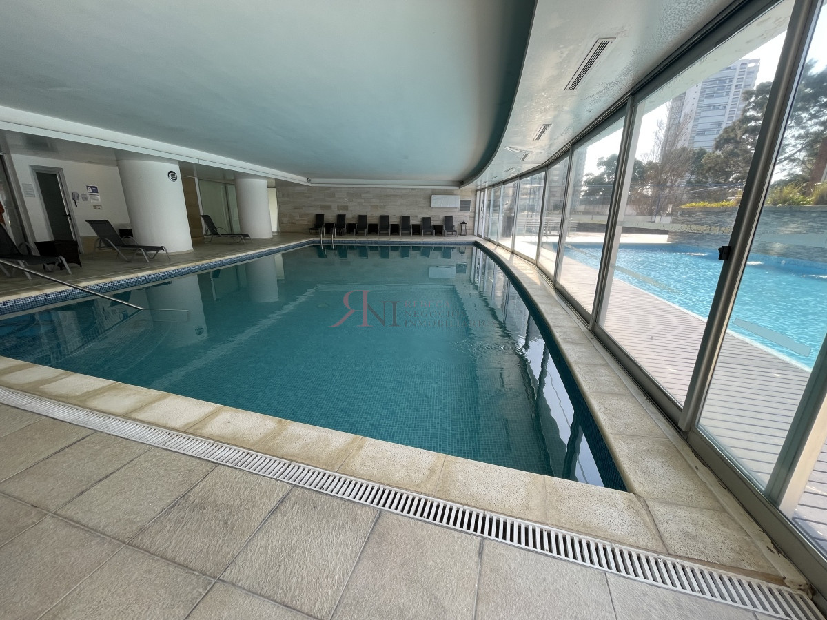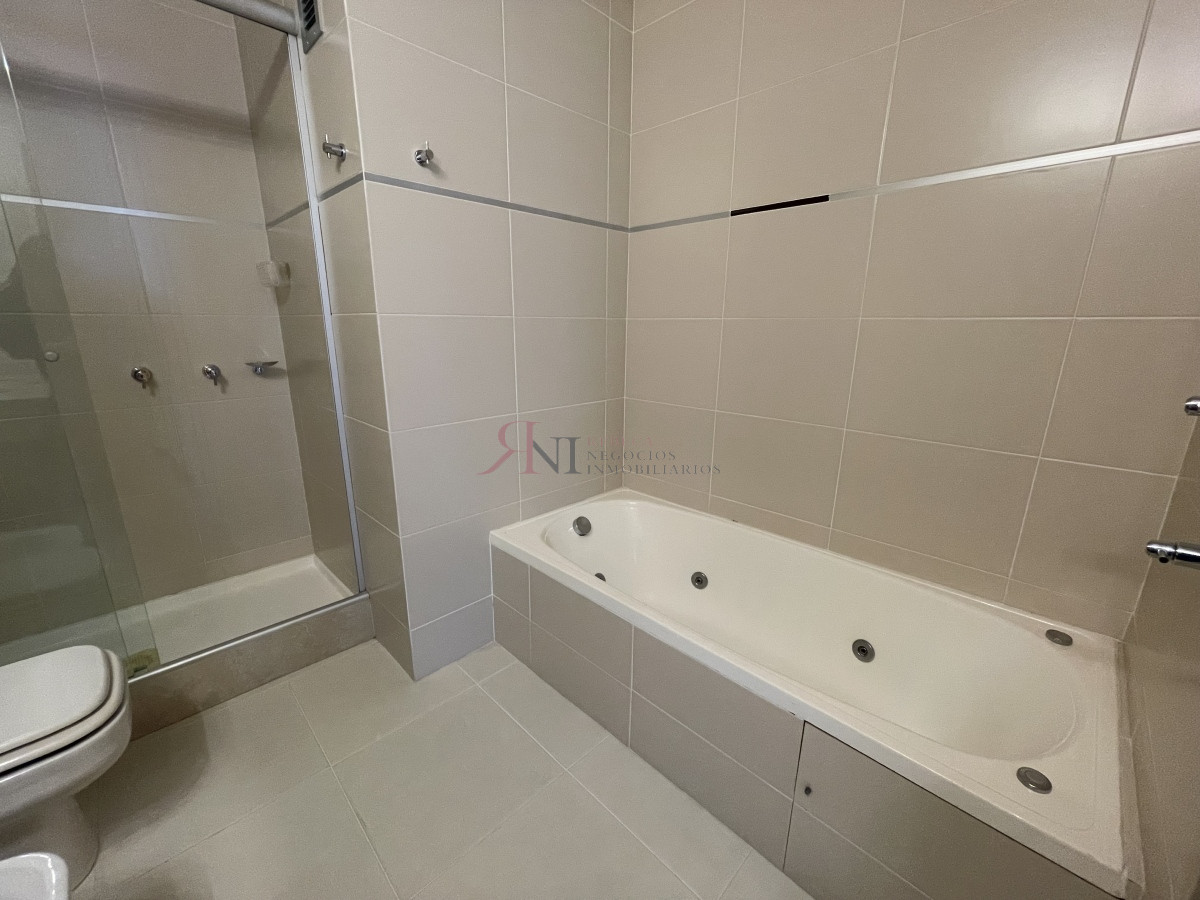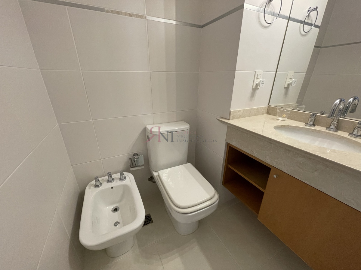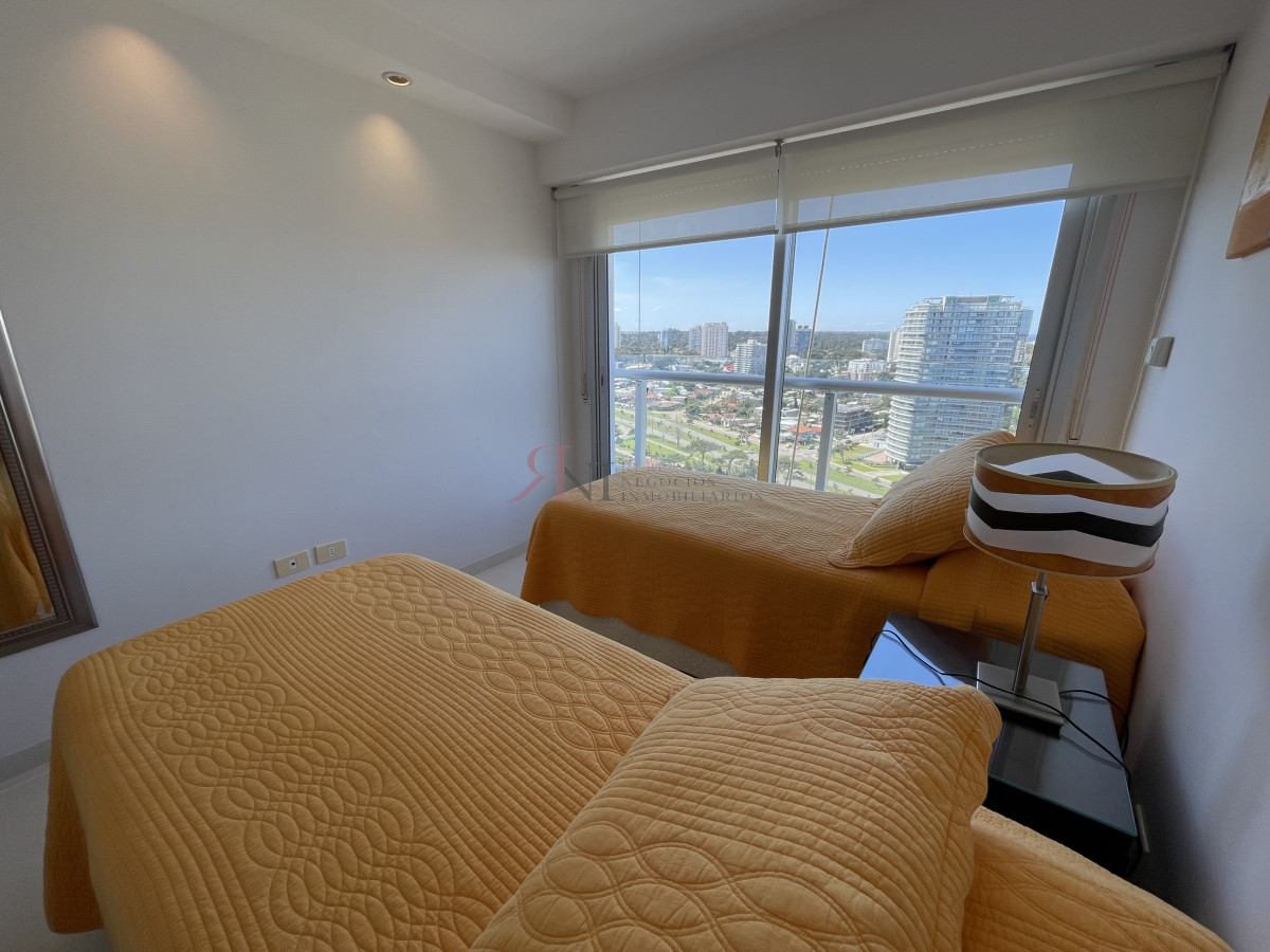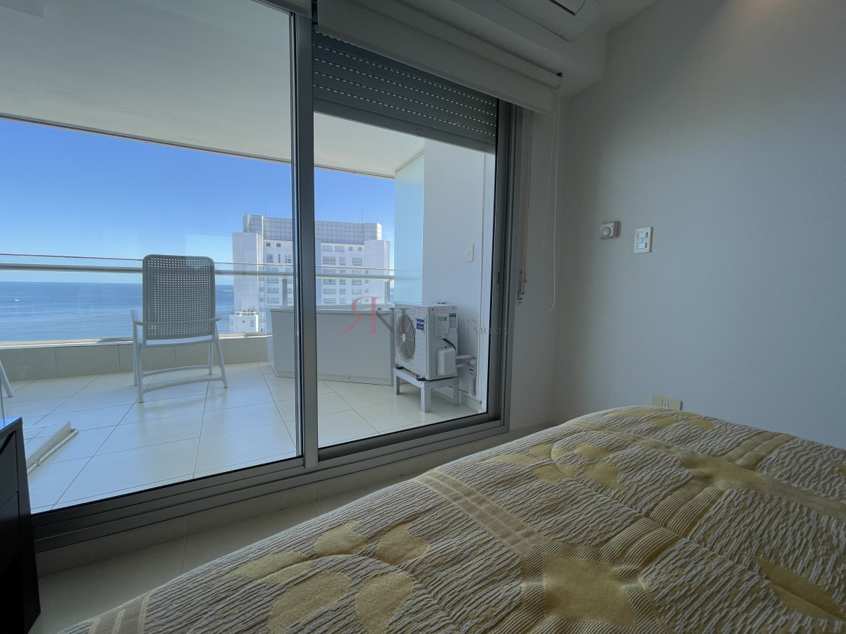 El living comedor tiene increible vista panorámica a la isla Gorritti , terraza abierta, 2 dormitorios en suite, toilette, cocina completa y definida, garaje.