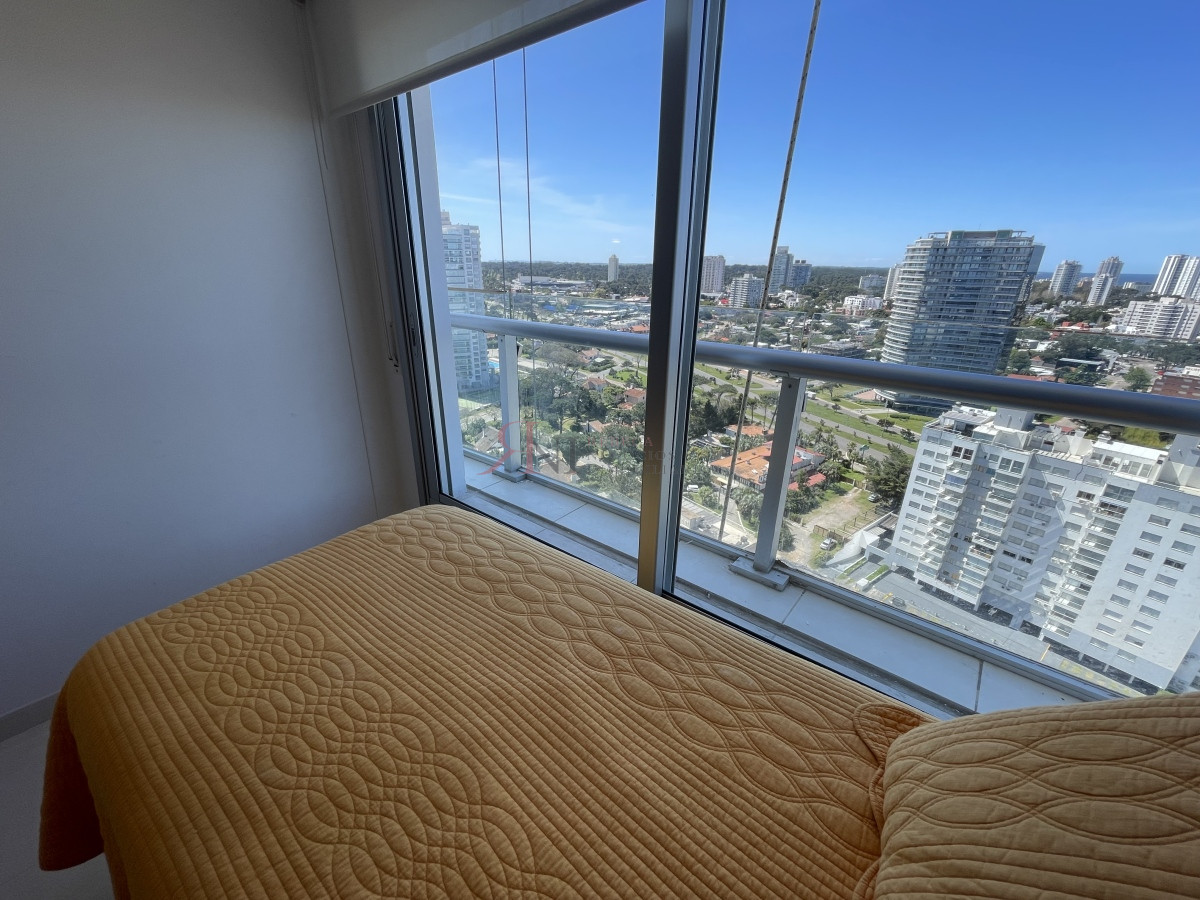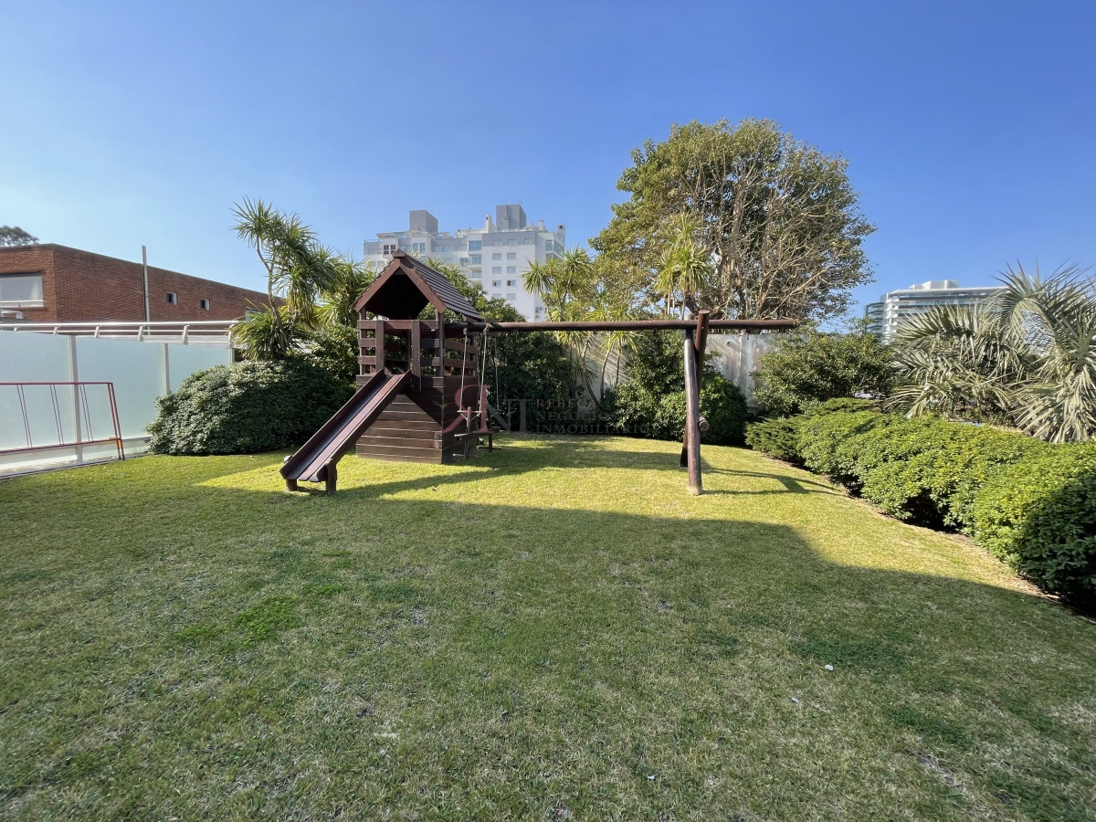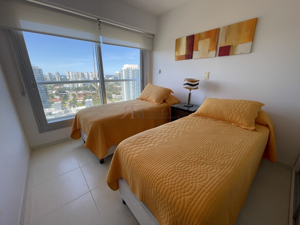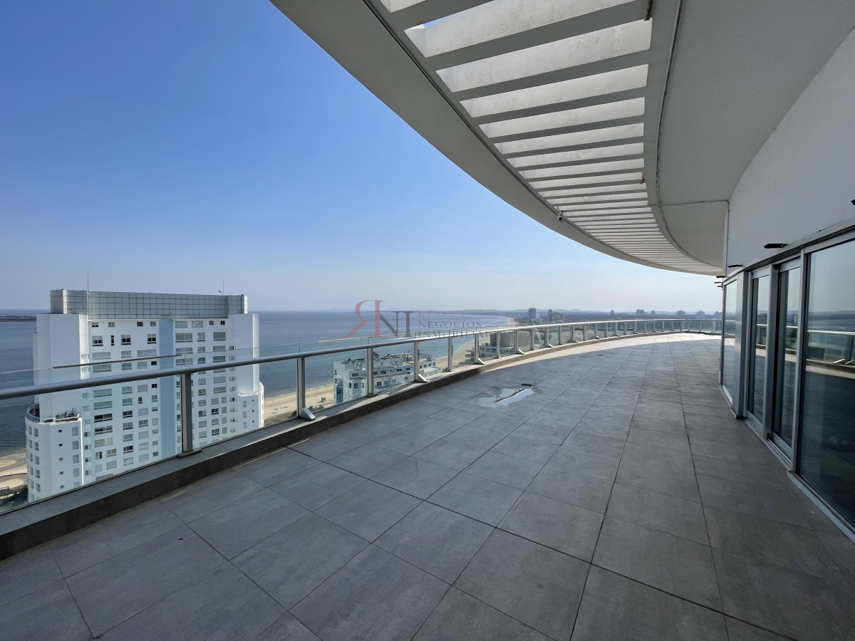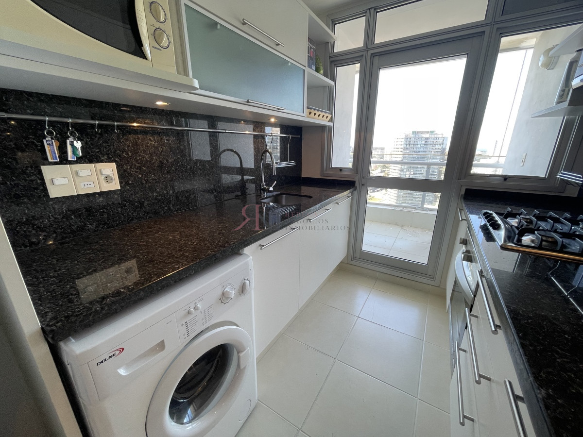 El living comedor tiene increible vista panorámica a la isla Gorritti , terraza abierta, 2 dormitorios en suite, toilette, cocina completa y definida, garaje.
