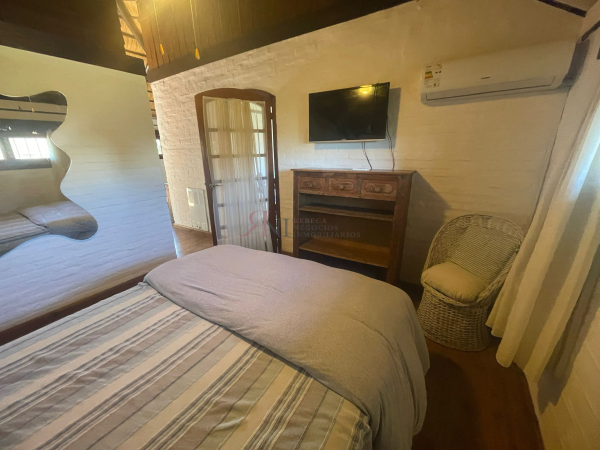 Living comedor muy luminoso con estufa a leña de alto rendimiento, 4 dormitorios ( 2 en planta baja y 2 en planta alta) 2 baños, estar en planta alta con balcón y vista al mar, cocina con buena luz natural. Garaje para 1 auto con portón automático a control remoto. Aire acondicionado en living y dormitorio principal . Rejas y mosquiteros. Se vende con muebles y equipamiento que se ve en las fotos.
