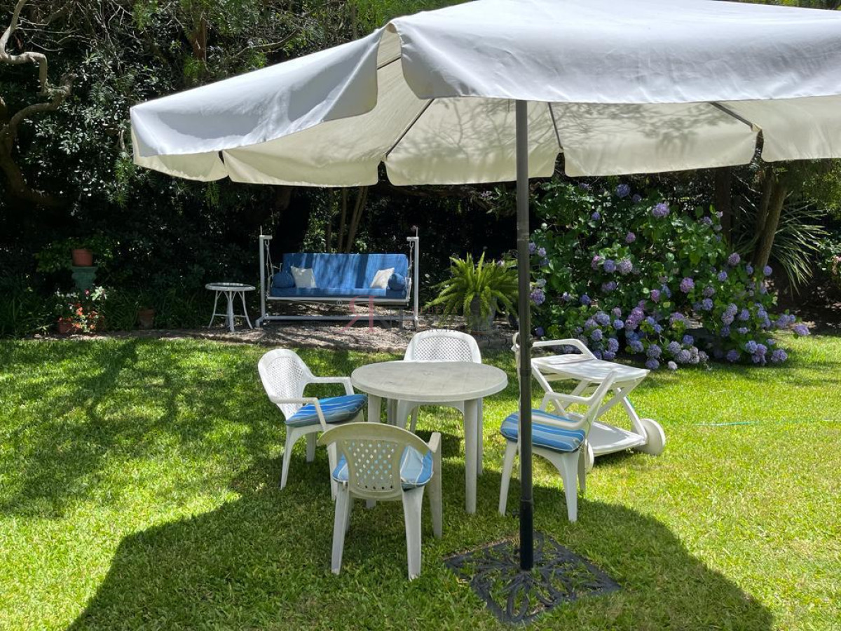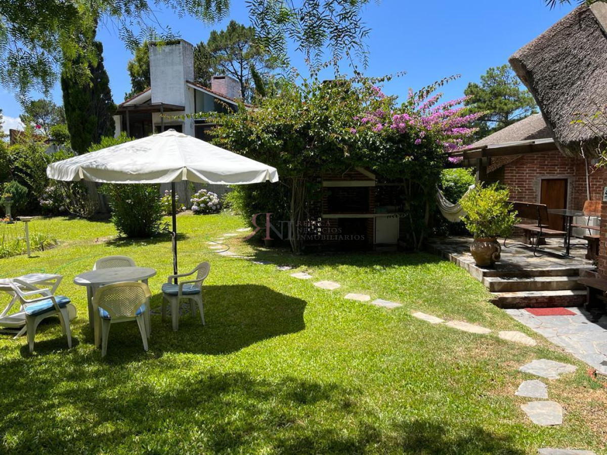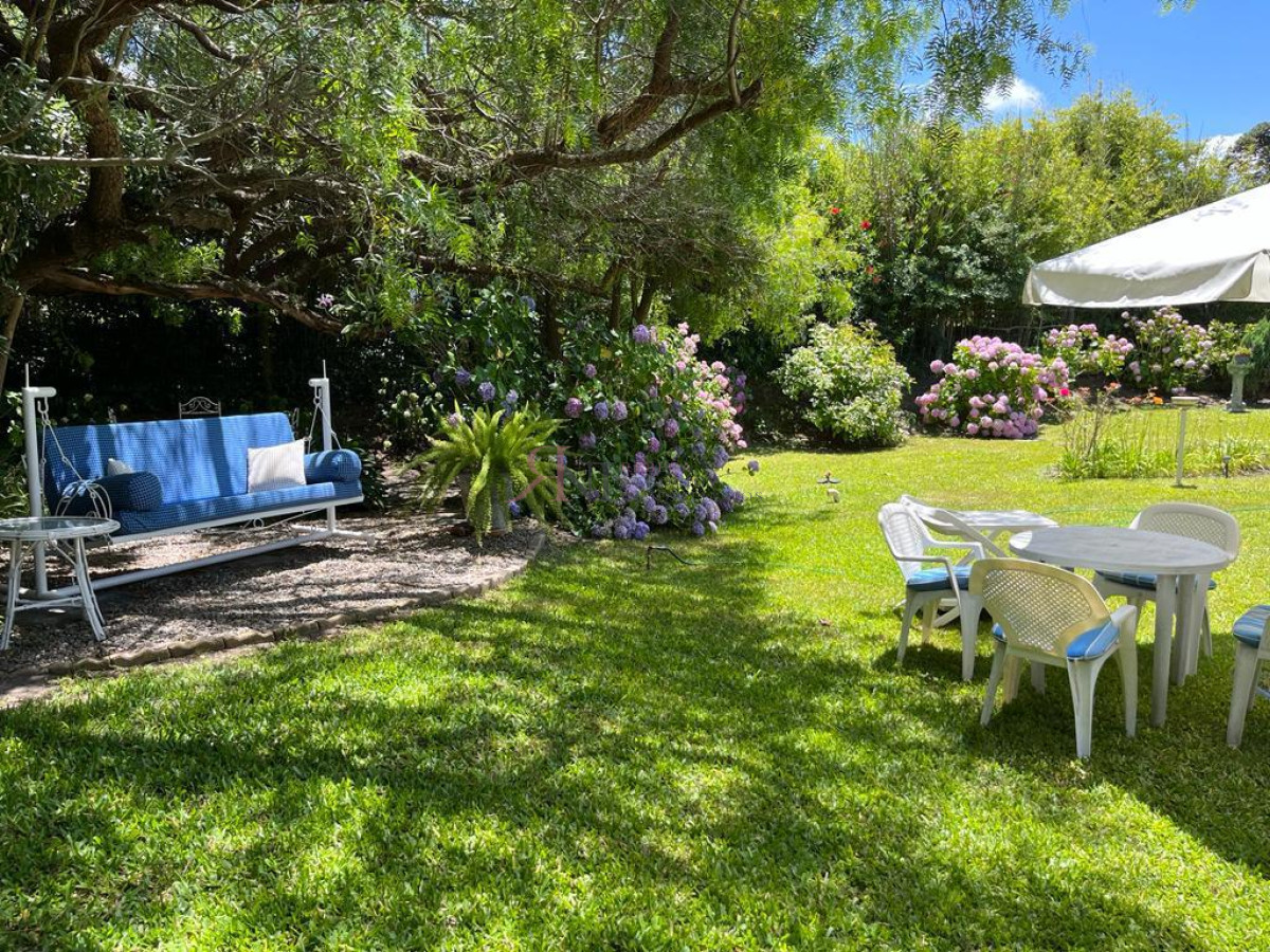 Zona muy tranquila con excelente entorno, muy lindo jardín , totalmente cercada, parrillero techado , riego, saneamiento. Alarma. En 2 plantas.